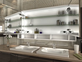 Sollten Sie einen Abstellplatz für diverse Badezimmer Accessoires benötigen und keine Abstellfläche haben oder ihren bestehenden erweitern wollen, so können Sie eine Glasablage hinzubuchen. Schwebende Eleganz und ein luftig leichter Look zieht mit Glasböden in Ihr Spiegelschrank ein. Ein Spiegelschrank ist optimal dafür geeignet, Ihre Badutensilien kompakt und sicher zu verstauen und alles an einem Ort zu platzieren. Sie können bis zu 6 Glasablagen bestellen.Bild Glasablage Spiegelschrank